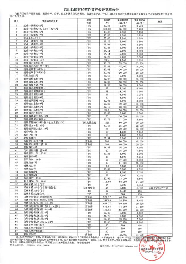 營山縣國有經(jīng)營性資產(chǎn)競租公告