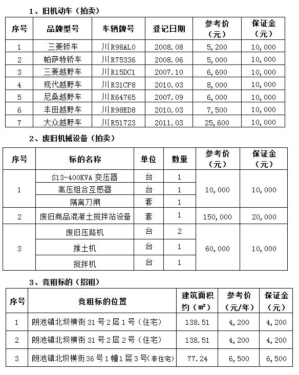 拍賣(mài)(招租)公告受委托,我公司定于2022年3月18日上午9時(shí)30分在營(yíng)山縣公共資源交易中心3樓會(huì)議室對(duì)下列標(biāo)的進(jìn)行公開(kāi)拍賣(mài)(招租)。 |